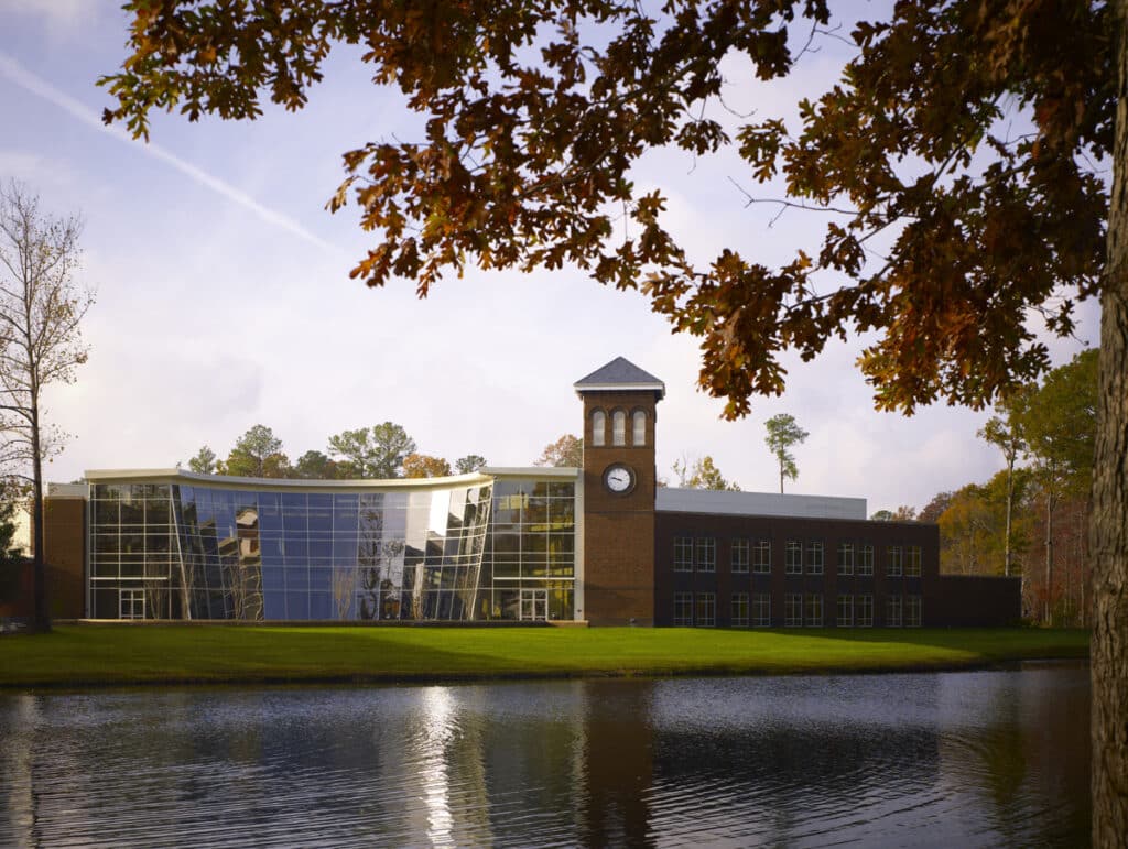 Emory Proton Therapy Center wanted something different from previous proton therapy centers—a facility with a visual connection to its surroundings and architectural presence beyond the functional requirements of radiation containment.